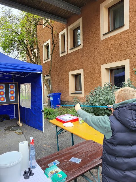 13. Oktober 2025Seit Jahren ist die Schützenjugend mit einem Stand auf dem Herbstmarkt der Gemeinde Neukirchen vertreten um allen Interessenten das Lichtschießen näher zu bringen. Aufgrund technischer Probleme musste man sich in diesem Jahr kurzfristig etwas anderes einfallen lassen und so durften die zahlreichen Besucher des Herbstmarkts das Blasrohrschießen ausprobieren, was bei Groß und Klein auf große Begeisterung gestoßen ist. Das graue und kühle Wetter hielt die Besucher nicht von einem Besuch des Marktes und unseres Standes ab.
