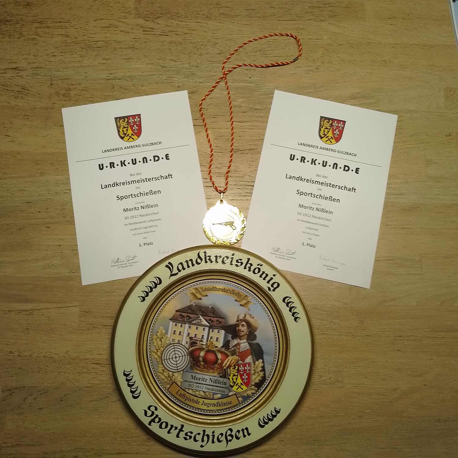 Moritz Nißlein erreichte in der Altersklasse LP Schüler den 1. Platz und konnte sich außerdem über den Titel des Landkreisjugendkönigs LP freuen.