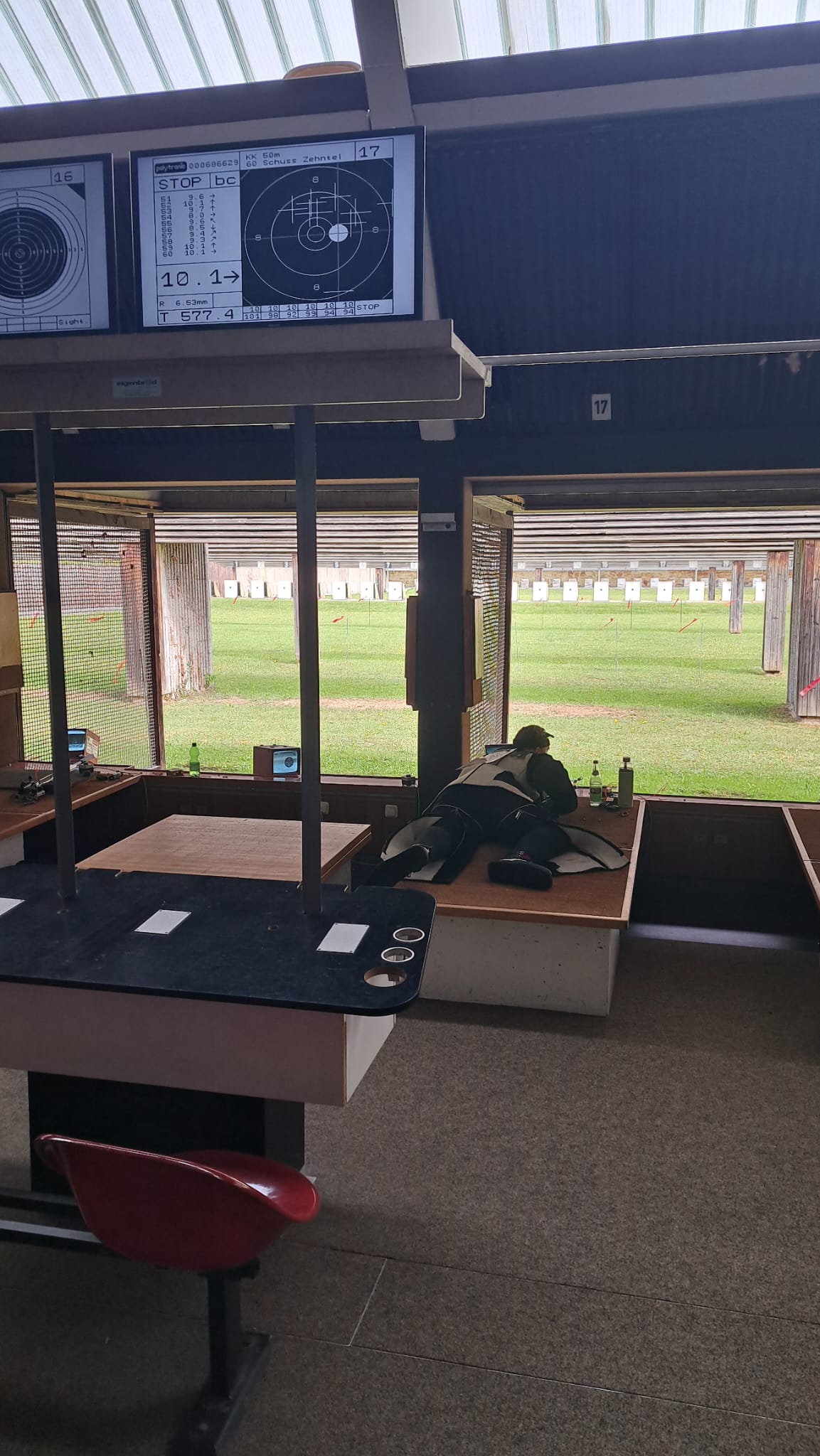 Tim Nißlein durfte die SG 1912 Neukirchen bei der Premiere der 1. Deutschen Meisterschaft im Lichtschießen in LLZ Frankfurt am Main vertreten. Damit ist das Lichtschießen nun endgültig im Deutschen Schießsport angekommen und wer in Frankfurt vor Ort war, konnte sich vom Können und vor allem der Professionalität der Jüngsten überzeugen. Bei der DM Licht wird freihändig geschossen, um einen schleichenden Übergang in den Luftdruckbereich zu schaffen. Es handelt sich in keinster Weise um eine „Spaßveranstaltung“, denn die Kinder im Alter von 9-12 Jahren stehen den „Großen“ in Nichts nach! Obwohl die 1. DM Licht geprägt war von Startschwierigkeiten (Probleme mit der Technik und v.a. der großen Besucheranzahl), war es dennoch eine gelungene Veranstaltung. Insgesamt gingen 467 Kinder in den Disziplinen Lichtgewehr, Lichtgewehr 3-Stellung und Lichtpistole an den Start. Ausgetragen wurden der Wettkampf auf DISAG-Lichtanlagen. Für Tim, der bereits Wettkampferfahrung bei der Bayerischen Meisterschaft und dem Norddeutschland-Cup sammeln konnte, war der Wettkampf dennoch eine große Herausforderung: Da in Neukirchen auf Meyton-Anlage trainiert wird, musste er ein Leihgewehr von DISAG nutzen. Hinzu kamen sommerliche Höchsttemperaturen, was den Schießstand in eine Sauna verwandelte. Von der Nervosität gar nicht zu reden. Der Druck war groß und dies war Tim deutlich anzumerken. Mit 120 Ringen landete er auf Platz 117 in seiner Altersklasse.