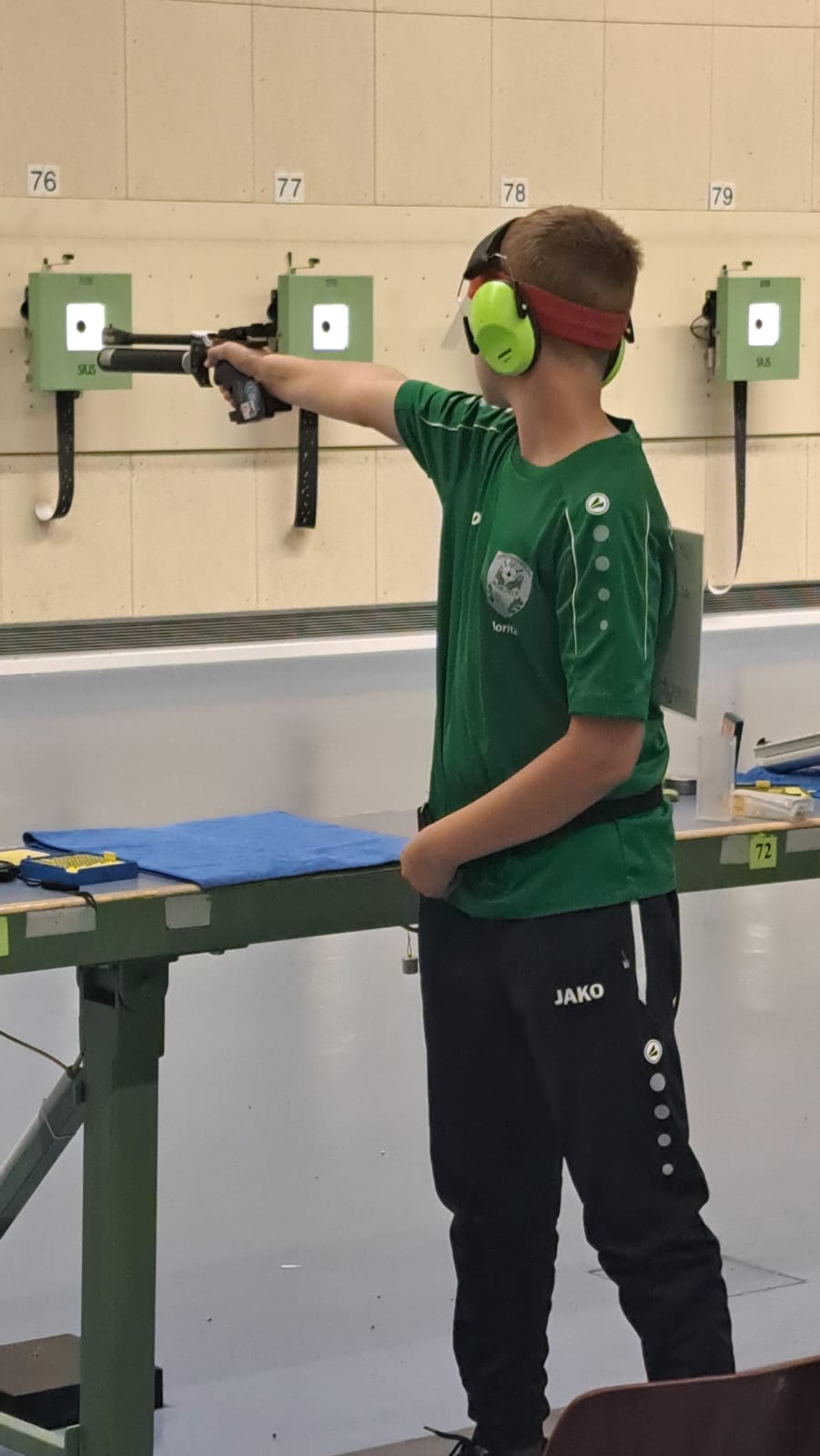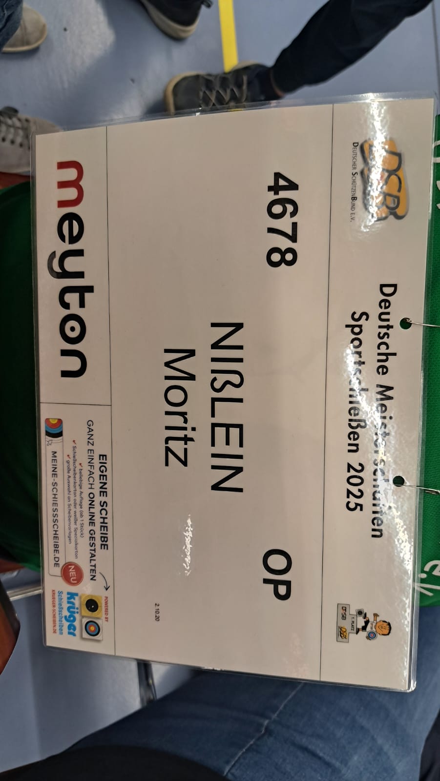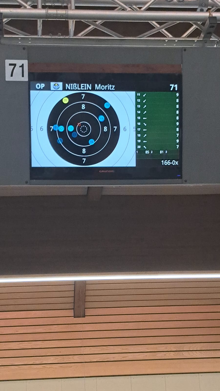 Sein Bruder Moritz Nißlein konnte sich in gleich drei Disziplinen für die Deutsche Meisterschaft in München qualifizieren. Freitags ging es für ihn los in der Disziplin Luftpistole Schüler männlich. Mit 166 Ringen erreichte er hierbei Platz 44. Zeit zum Durchatmen blieb nicht, denn bereits am nächsten Tag ging es für ihn weiter mit der Disziplin LP Mehrkampf: mit 336 Ringen erreichte er hier einen hervorragenden 20. Platz. Und in der Disziplin LP Standard konnte er sich mit 317 Ringen Platz 30 erkämpfen.